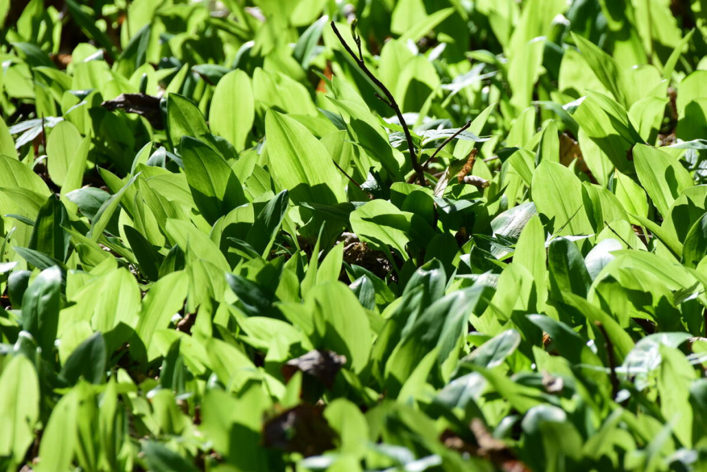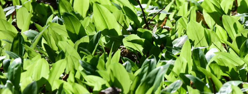 I see clumps of sprouting green, topped with tiny triangles of white, fighting for space along both sides of the lane. Cluster upon cluster of blooming wild garlic.